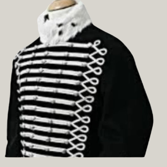 New Black Men's Wool Hussars Jacket - Black Wool 7th Light Dragoon Hussars Pelise 1810 Jacket